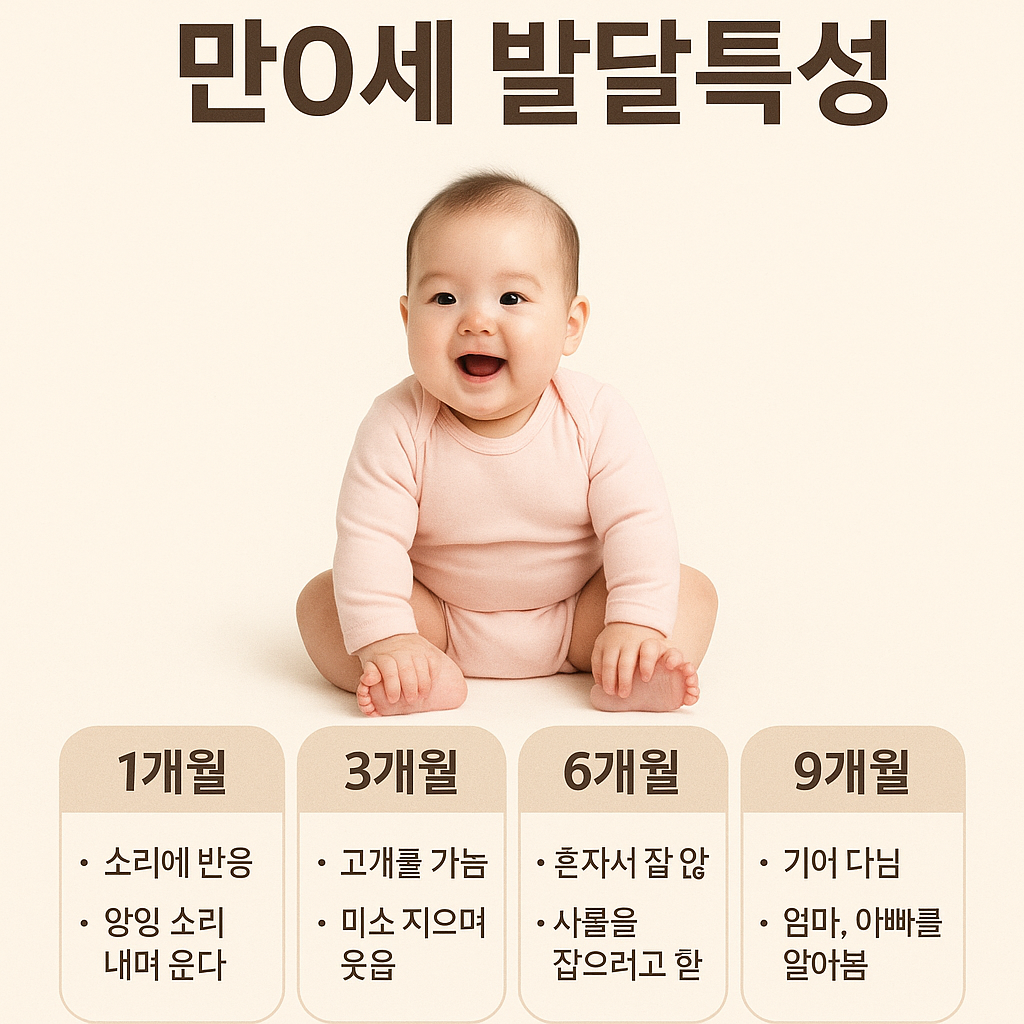 만 0세는 인간 발달에서 가장 중요한 기초가 마련되는 시기로, 생후 첫해 동안 아기는 신체적 성장뿐만 아니라 인지적, 사회 정서적, 언어적 발달을 폭발적으로 경험한다. 출생 직후의 아기는 부모와의 접촉과 돌봄에 전적으로 의존하지만, 불과 12개월이라는 짧은 시간 동안 독립적으로 앉고, 기어다니고, 서고, 걷기까지 하며 놀라운 변화를 보여준다. 이 시기의 발달 경험은 이후 전 생애에 걸쳐 학습 과정서, 사회적 관계의 기초가 되므로, 부모와 교사가 아이의 특성을 잘 이해하고 민감하게 반응하는 것이 무엇보다 중요하다. 먼저 신체 발달을 살펴보면, 출생 시 아기의 평균 체중은 3~3.5킬로그램 정도이고 키는 약 50센티미터 전후이다. 그러나 만 1세가 될 무렵에는 체중이 세 배 가까이 늘어나 9~10킬로그램에 이르고, 키도 약 75센티미터 전후로 성장한다. 이는 인간의 생애 주기에서 가장 빠른 성장 속도이며, 특히 머리둘레의 급격한 증가는 뇌 발달이 매우 활발히 일어나고 있음을 보여준다. 신경세포의 수는 태어날 때 거의 다 형성되어 있지만, 이 시기에 시냅스 연결이 폭발적으로 증가하면서 학습과 발달의 토대가 다져진다. 운동 발달 역시 뚜렷하게 나타나는데, 생후 첫 몇 개월 동안은 머리를 제대로 가누지 못하지만 3~4개월 무렵에는 고개를 들고 주위를 둘러볼 수 있게 된다. 6개월쯤 되면 혼자 앉기를 시도하고, 8~9개월에는 기어다니며 공간을 탐색한다. 10개월이 지나면서 잡고 서거나 가구를 붙잡고 옆으로 이동하며, 돌 무렵에는 스스로 몇 걸음을 떼는 아기도 있다. 이러한 과정은 단순히 이동 능력의 획득을 넘어, 세상을 더 넓게 탐색하고 경험하는 기회를 만들어 준다. 소근육 발달은 물체를 잡고 다루는 능력으로 확인된다. 처음에는 손을 꽉 쥔 채로 있지만, 3개월 무렵부터 손을 펴고 물건을 잡으며 탐색한다. 6개월이 되면 양손으로 물체를 잡아 옮기고, 9개월 전후에는 엄지와 검지를 이용해 작은 물체를 집는 ‘핀셋 잡기’를 할 수 있다. 이러한 정교한 손동작은 장난감이나 주변 물건을 탐색하는 데 사용되며, 인지 발달과 언어 발달에도 긍정적인 영향을 준다. 인지 발달을 보면, 피아제가 제시한 감각운동기에 해당하는 만 0세 영아는 감각과 운동을 통해 세상을 이해한다. 단순히 자극에 반응하는 수동적 존재가 아니라, 반복적인 행동을 통해 원인과 결과를 학습하며 점차 능동적으로 환경과 상호작용한다. 예를 들어, 딸랑이를 흔들면 소리가 난다는 사실을 반복적으로 경험하며 인과관계를 이해한다. 생후 6~8개월 무렵에는 사라진 사물이 여전히 존재한다는 대상 영속성 개념을 획득한다. 이는 장난감을 숨기면 그것을 찾으려는 행동으로 확인할 수 있다. 대상 영속성은 기억 능력의 발달만 아니라 이후 상징적 사고와 언어 발달의 기초가 된다. 또한 영아는 단순한 모방에서 시작해 점차 새로운 행동을 시도하며 문제 해결 능력을 확장한다. 사회정서 발달 측면에서는 애착 형성이 가장 중요한 과업이다. 에릭슨은 만 0세 시기의 발달 과제를 ‘기본적 신뢰 대 불신’이라고 설명했다. 영아는 양육자로부터 따뜻하고 민감한 반응을 경험할 때 세상은 안전하다는 신뢰를 형성하고, 이는 이후 사회적 관계와 정서적 안정의 기초가 된다. 생후 2개월 무렵부터는 사회적 미소를 보이며 타인과의 정서적 교류가 시작된다. 4~6개월 무렵에는 낯가림이 나타나며, 8개월 이후에는 분리불안이 두드러진다. 이는 주 양육자와의 애착이 형성되었음을 의미한다. 돌 무렵에는 타인의 행동을 모방하거나 간단한 지시에 반응하며, 눈맞춤과 손짓을 통해 상호작용을 확장한다. 언어 발달 또한 눈에 띄게 진행된다. 영아는 출생 직후부터 소리에 반응하며 특히 엄마의 목소리에 민감하다. 4~6개월 무렵 옹알이가 시작되어 다양한 모음을 내고, 7~9개월에는 자음이 섞인 옹알이가 나타난다. 이는 단순한 발성이 아니라 주변의 언어적 환경을 반영한 소리다. 10~12개월 무렵에는 ‘맘마’, ‘안녕’ 등 의미 있는 첫 단어를 말하기 시작한다. 또한 손짓, 몸짓, 눈맞춤 등 비언어적 표현을 통해 의사소통을 시도한다. 이러한 경험은 언어 발달만 아니라 사회적 상호작용 능력을 키우는 데 중요한 역할을 한다. 이 시기의 발달을 돕기 위해서는 환경적 요인이 무엇보다 중요하다. 안정된 애착 관계를 형성하기 위해 양육자는 영아의 울음에 즉각적으로 반응하고, 자주 안아주며 신체적 접촉과 정서적 교류를 충분히 제공해야 한다. 안전한 환경을 마련하여 아기가 자유롭게 탐색하고 다양한 감각 경험을 할 수 있도록 지원하는 것도 필요하다. 언어 발달을 촉진하기 위해서는 자주 말을 걸고, 그림책을 읽어주며, 노래를 불러주는 것이 효과적이다. 정서적으로는 아이의 요구를 존중하고 따뜻하게 반응하는 태도가 기본적 신뢰감을 키우는 핵심이다. 한편 발달 지표를 살펴 조기에 문제를 발견하는 것도 중요하다. 6개월이 되어도 머리를 가누지 못하거나, 9개월이 되어도 혼자 앉지 못하며, 12개월이 되어도 옹알이나 눈맞춤이 거의 없을 경우 발달 지연을 의심할 수 있다. 이 경우에는 전문가의 상담과 조기 개입이 필요하다. 결